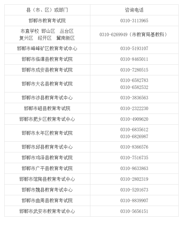 2025年邯鄲市中考報(bào)名咨詢電話
